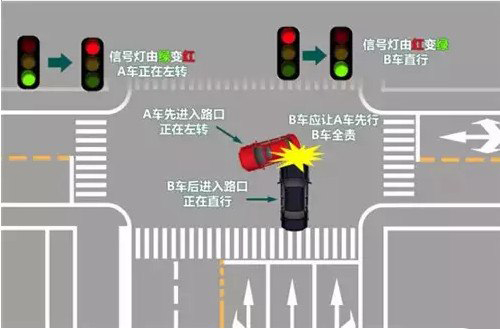 在有紅綠燈的交通燈路口,如果右側(cè)車輛行駛的方向已變成紅燈,但是路口內(nèi)車輛還沒(méi)有全部通過(guò),本側(cè)直行車輛已經(jīng)是綠燈了,那么就應(yīng)該讓先進(jìn)入路口車輛先行。這就是因?yàn)橄冗M(jìn)入交叉路口的車輛有優(yōu)先通過(guò)權(quán)